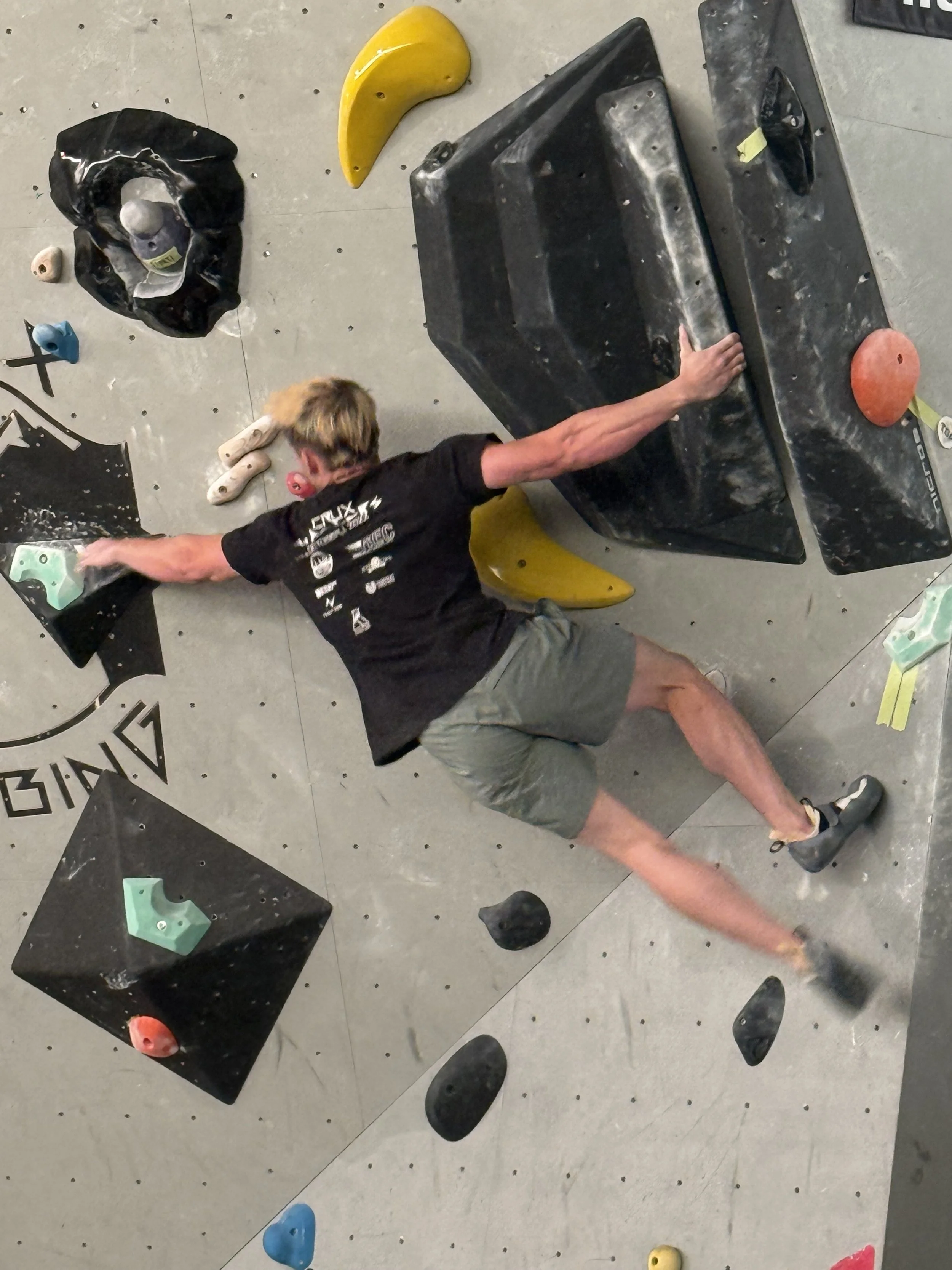 Crux climbing is a local bouldering gym created to foster community, promote a space for you to reach new heights, and achieve new goals in yourself.